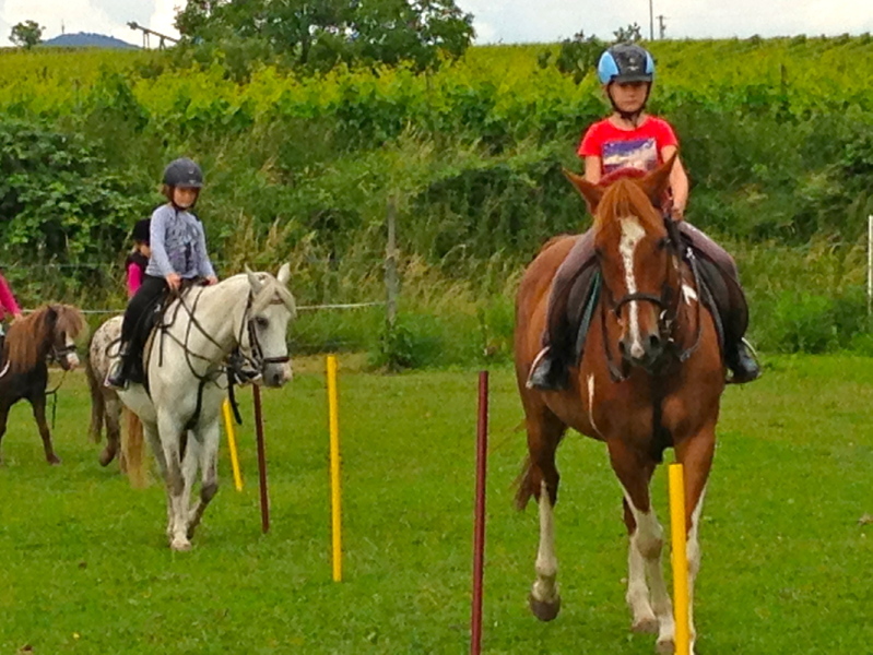 Täglich morgens Reitunterricht. Mittags Reiterspiele, Unterricht, Ausflug mit den Ponys zur Landauer Hütte, Kreativangebote,ökologische Zusammenhänge der Tierhaltung in der Natur erleben u.v.m..